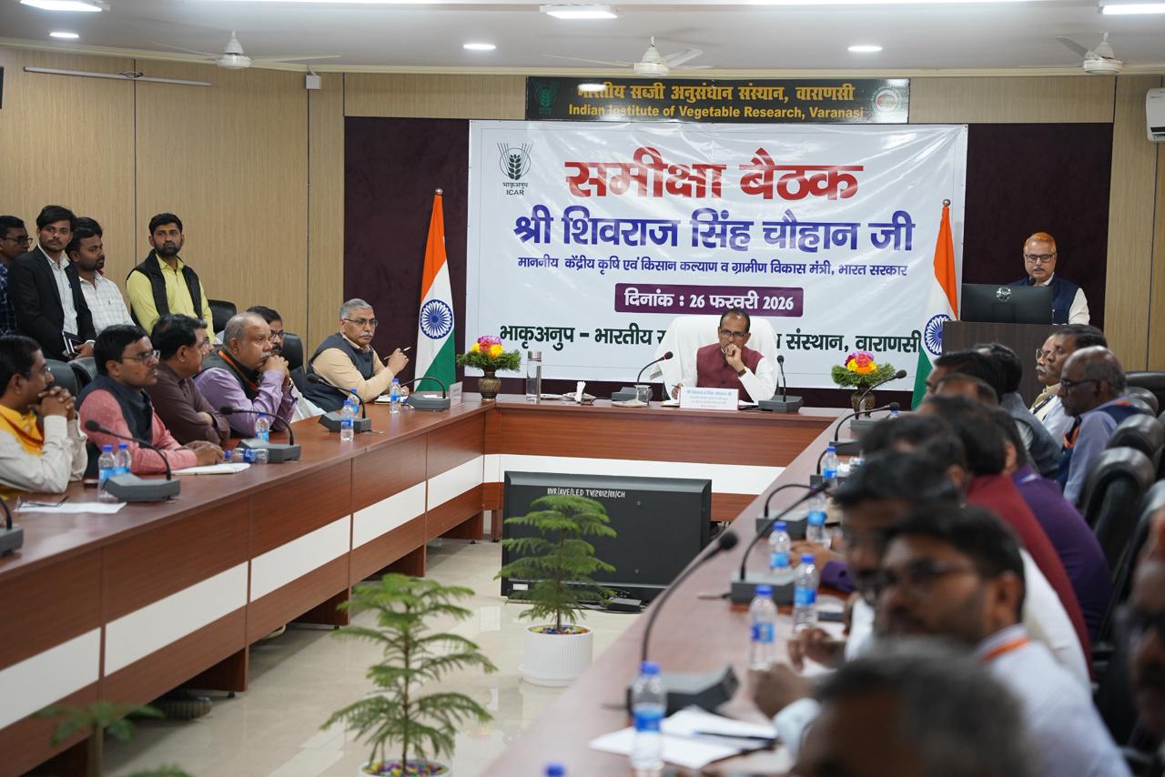 वाराणसी में कृषि मंत्री शिवराज सिंह चौहान का दौरा, ICAR-IIVR में योजनाओं की समीक्षा और खेतों का निरीक्षण किया।