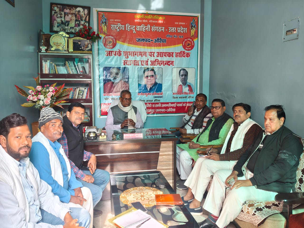 दिबियापुर – नगर स्थित राष्ट्रीय हिंदू वाहिनी संगठन उत्तर प्रदेश कार्यालय पर 203 दिबियापुर विधानसभा की केन्द्रीय बजट में पारित विभिन्न योजनाओं की जानकारी पर चर्चा को लेकर भाजपाइयों ने एक संगोष्ठी का आयोजन पूर्व विधायक एवं राज्य मंत्री उत्तर प्रदेश सरकार लाखन सिंह राजपूत की अध्यक्षता में सम्पन्न हुई।‌ केन्द्रीय बजट चौपाल की एक बैठक अवंतीबाई लाइब्रेरी सेहुद स्थित कार्यालय पर 09 फरवरी 2026 को प्रातः 11 बजे सम्पन्न होगी।‌ बजट चोपाल के मुख्य अतिथि पूर्व विधायक एवं राज्य मंत्री लाखन सिंह राजपूत और विशिष्ट अतिथि आनन्द सिंह कानपुर बुन्देलखण्ड क्षेत्रीय उपाध्यक्ष एवं जिला प्रभारी औरैया होंगे जबकि कार्यक्रम की अध्यक्षता सर्वेश कठेरिया जिलाध्यक्ष भाजपा औरैया करेंगे। कार्यक्रम संयोजक की जिम्मेदारी रामकुमार अवस्थी समाज सेवी व वरिष्ठ भाजपा नेता औरैया को सोंपी गई है। कार्यक्रम संचालन का दायित्व उत्तर प्रदेश प्रधानाचार्य परिषद के प्रदेश अध्यक्ष एवं जिला संयोजक शिक्षक प्रकोष्ठ भाजपा राजेश कुमार अग्निहोत्री प्रधानाचार्य को सोंपा गया है। कार्यक्रम को सफल बनाने के लिए दिबियापुर मंडल के सभी पदाधिकारियों को जिम्मेदारियां सोंपी गईं हैं। कार्यक्रम में अवधेश कुमार शुक्ला क्षेत्रीय मंत्री कानपुर बुन्देलखण्ड क्षेत्र, मन मोहन सिंह सेंगर जिला महासचिव राष्ट्रीय हिंदू वाहिनी संगठन उत्तर प्रदेश, अमर सिंह राजपूत, मोहित राजपूत सह संयोजक विधानसभा दिबियापुर, सतेन्द्र सिंह दोहरे मंडल महामंत्री दिबियापुर, श्याम सिंह कुशवाहा जिला प्रतिनिधि भाजपा एवं नमन अग्निहोत्री एडवोकेट मौजूद रहे।