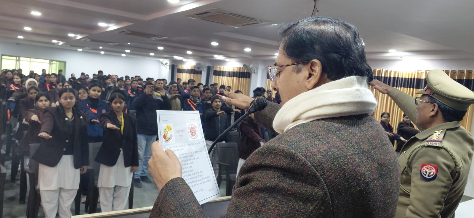 सावित्रीबाई फुले के चित्र पर माल्यार्पण करते सपा नेता।