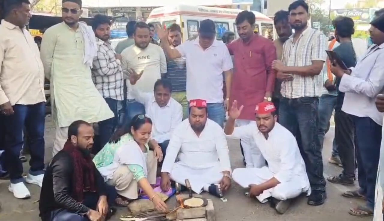 इटावा। गैस किल्लत को लेकर समाजवादी पार्टी के कार्यकर्ताओं ने विरोध प्रदर्शन किया। शहर के सबसे व्यस्त शास्त्री चौराहे पर दो दर्जन से अधिक समाजवादियों ने खाली गैस सिलेंडर रखकर लकड़ी का चूल्हा जलाया और उसी पर रोटियां बनाकर सरकार के खिलाफ प्रदर्शन किया। सपा कार्यकर्ताओं ने कहा कि गैस की आपूर्ति न होने से आम लोग परेशान है। सरकार को तुरंत व्यवस्था सुधारनी चाहिए। गैस की कमी की खबरों के बीच समाजवादी पार्टी के कार्यकर्ता शनिवार को शहर के शास्त्री चौराहे पर एकत्र हुए उन्होंने खाली गैस सिलेंडर के साथ लकड़ी का चूल्हा जलाकर रोटियां बनाईं और गैस संकट को लेकर विरोध जताया। प्रदर्शनकारियों का कहना था कि गैस की आपूर्ति प्रभावित होने से आम लोगों के सामने खाना बनाने तक की समस्या खड़ी हो गई है। प्रदर्शन में शामिल कार्यकर्ताओं ने कहा कि गैस एजेंसियों पर लंबी लाइनें लग रही हैं और लोगों को समय पर सिलेंडर नहीं मिल पा रहा है। इसके कारण घरों में खाना बनाने में दिक्कत आ रही है। समाजवादी पार्टी के नेताओं का कहना है कि सरकार को इस समस्या का जल्द समाधान करना चाहिए ताकि आम लोगों को राहत मिल सके। समाजवादी महिला मोर्चा की नेता मालती यादव ने कहा कि कई घरों में गैस सिलेंडर खत्म हो चुका है और लोग खाना तक नहीं बना पा रहे हैं। उन्होंने कहा कि महिलाएं पति और बच्चों को समय पर खाना नहीं दे पा रही हैं जिससे घरों में झगड़े की स्थिति बन रही है। अगर ऐसी स्थिति में परिवारों में विवाद या तलाक जैसी नौबत आती है तो इसके लिए देश के मुखिया जिम्मेदार होंगे, क्योंकि गैस की आपूर्ति ठीक से नहीं हो रही है। सरकार लगातार दावे कर रही है लेकिन जमीनी हकीकत अलग है। गैस एजेंसियों पर लोगों की भीड़ लगी हुई है और सिलेंडर के लिए लोगों को परेशान होना पड़ रहा है। गैस की किल्लत को लेकर चूल्हे पर खाना बनाकर प्रदर्शन करते सपाई।